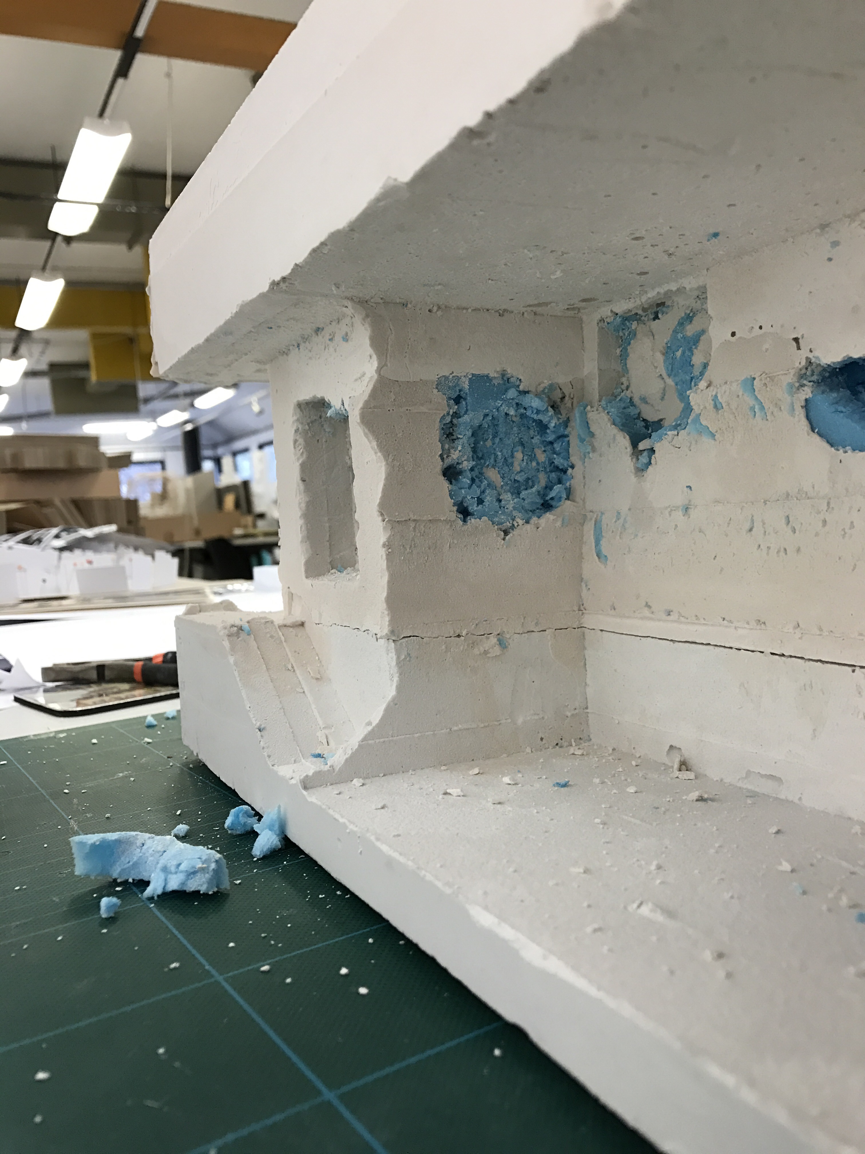 Spent the afternoon removing the plaster cast from the moult and chiselling out the foam formwork. The plaster got between the separate pieces of the foam so it was tricky in places to separate excess plaster from model.